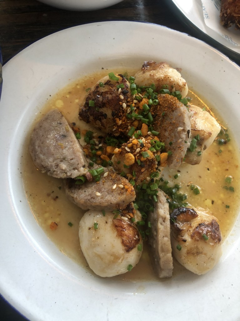There seemed to be even more sausage and scallop today or maybe I was closer on the table to my prey and wasn’t sharing as much
